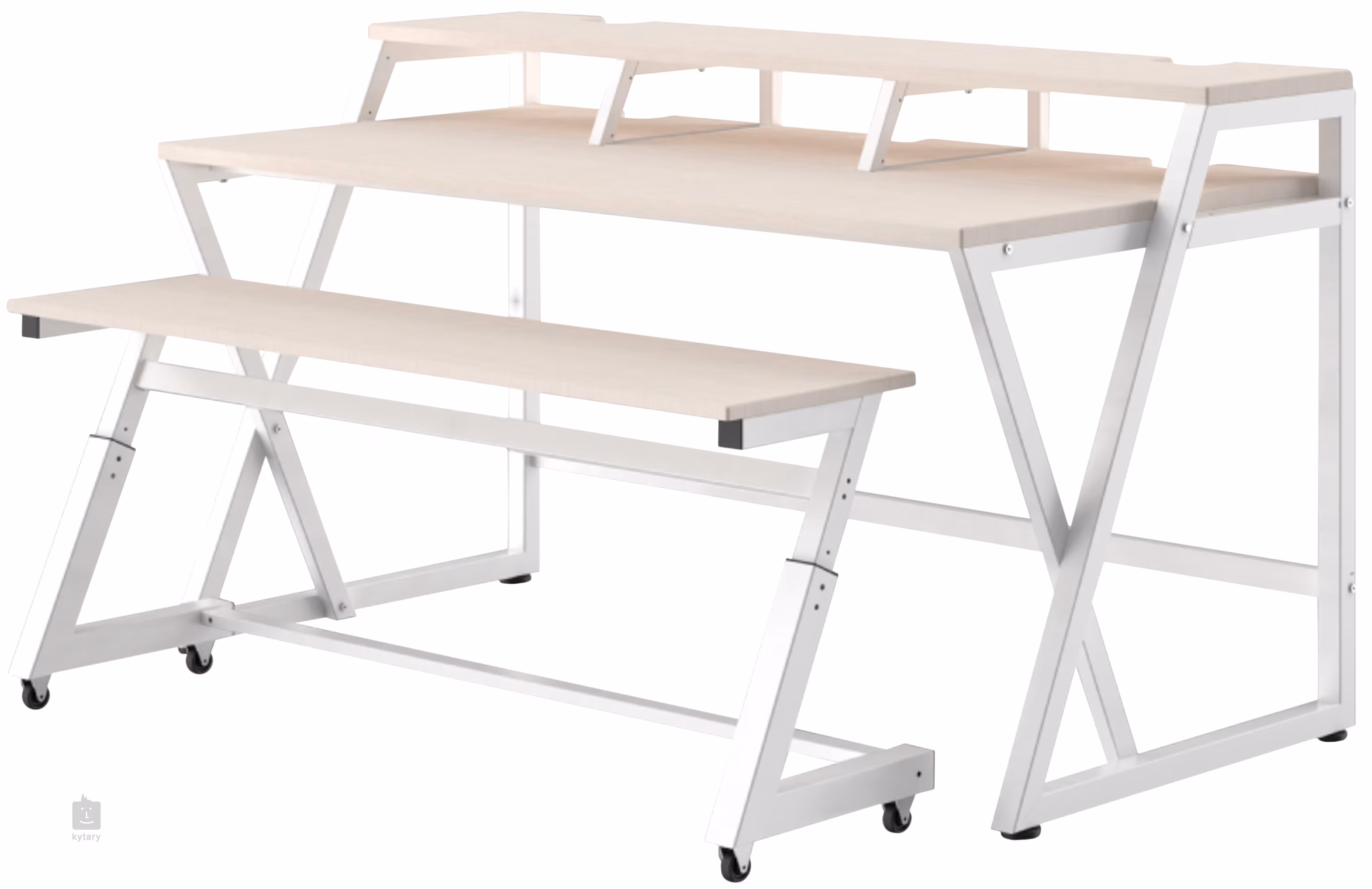Górna półka zapewni wystarczająco dużo miejsca na duży monitor LCD i parę monitorów odsłuchowych, które będą stanowić idealny sweet spot dzięki podstawie na wysokości 90 cm nad ziemią. Środkowa sekcja, z 3 pozycjami 3U, jest przeznaczona na najważniejszy sprzęt rack, a w środkowej sekcji rack można zainstalować dołączony drewniany wypełniacz, aby rozszerzyć możliwości przechowywania innego sprzętu zamiast pozycji rack. Masywna płyta główna o długości 146 cm jest zamocowana na wysokości 75 cm, podczas gdy wysuwany stolik na kółkach, odpowiedni nawet dla najszerszych instrumentów klawiszowych o szerokości do 135 cm, ma regulowaną wysokość od 51,5 do 61,25 cm.