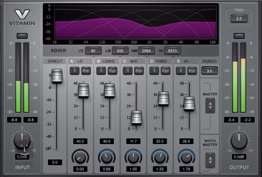 Waves Vitamin Sonic Enhancer to wielopasmowy wzmacniacz harmoniczny, który dodaje mocy i wibracji każdemu nagraniu audio. Wtyczka oferuje pięć niezależnych pasm częstotliwości z regulowanymi częstotliwościami przejścia, pozwala kontrolować szerokość dźwięku stereo dla każdego pasma i zawiera kontrolę dynamiki, aby podkreślić lub złagodzić transjenty. Nadaje się do miksowania, masteringu i dźwięku na żywo, Vitamin umożliwia precyzyjną edycję i dodaje charakterystyczny charakter do dźwięku.