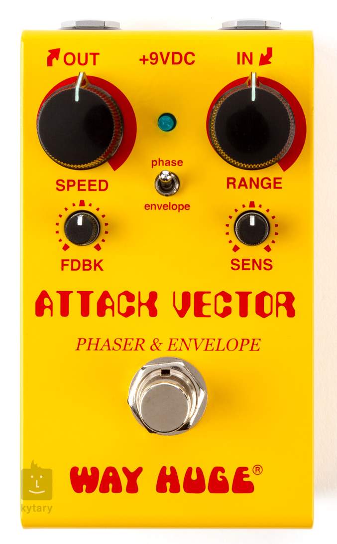 Efekt pedałowy WAY HUGE SMALLS ATTACK VECTOR PHASER & ENVELOPE łączy dwa różne efekty - przesuwnik fazy i filtr obwiedni - w jednej obudowie, aby zapewnić szeroką gamę ciekawych modulowanych dźwięków idealnych do funku i wielu innych stylów. Cztery pokrętła skrzynki określają intensywność i prędkość efektu phaser oraz czułość i zakres częstotliwości filtra obwiedni, a przełącznik umożliwia wybór między efektami lub podłączenie obu jednocześnie.