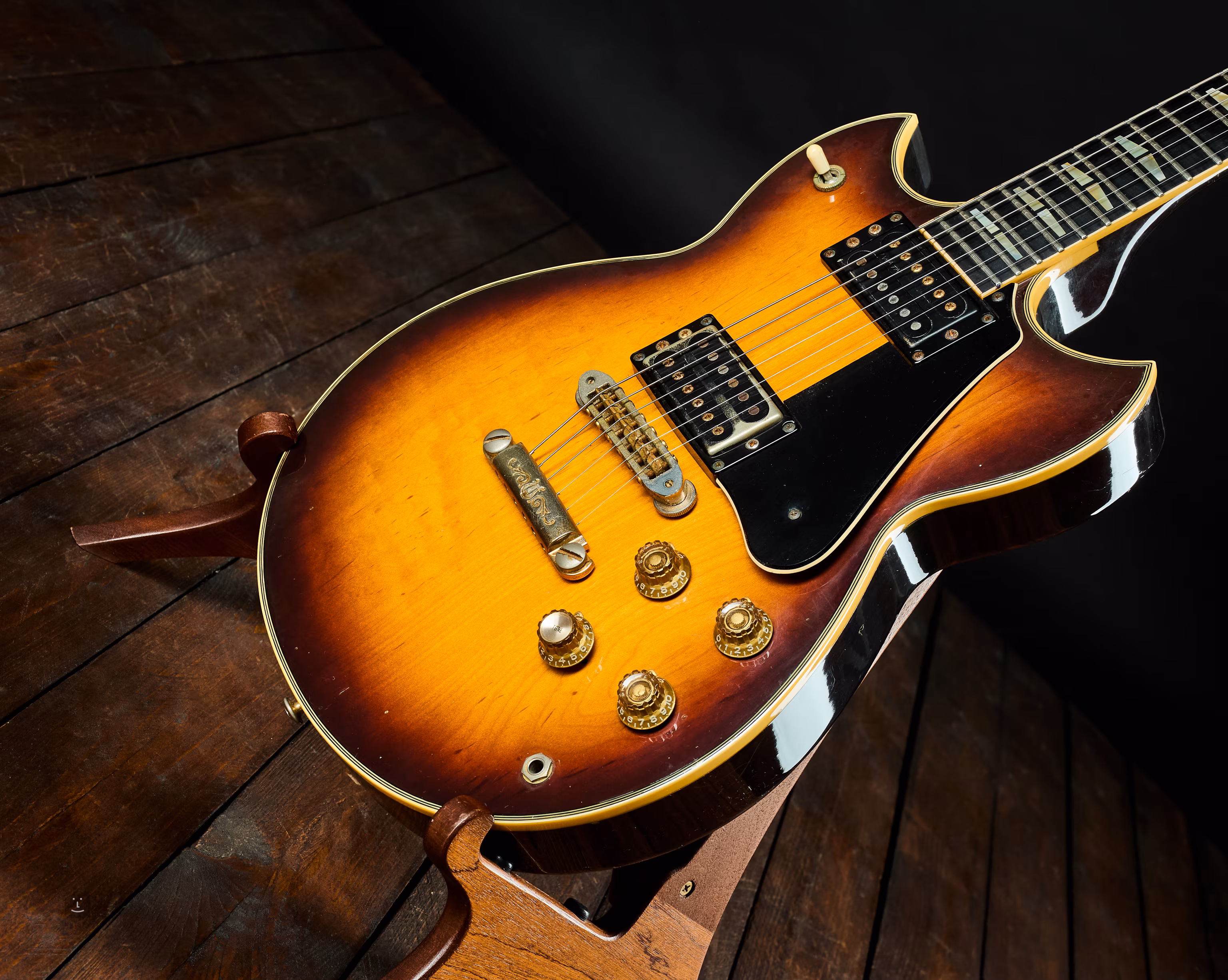 Oryginalny japoński instrument z początku lat 80. (prawdopodobnie z 1982 r.). Gitara elektryczna typu double-cut z klejonym połączeniem szyjki, złotym osprzętem i bogatymi wykończeniami. Rzadki przedmiot kolekcjonerski, wykonany w dużej mierze ręcznie z dużą precyzją. Gitara ma długi sustain i bardzo mocny ton.