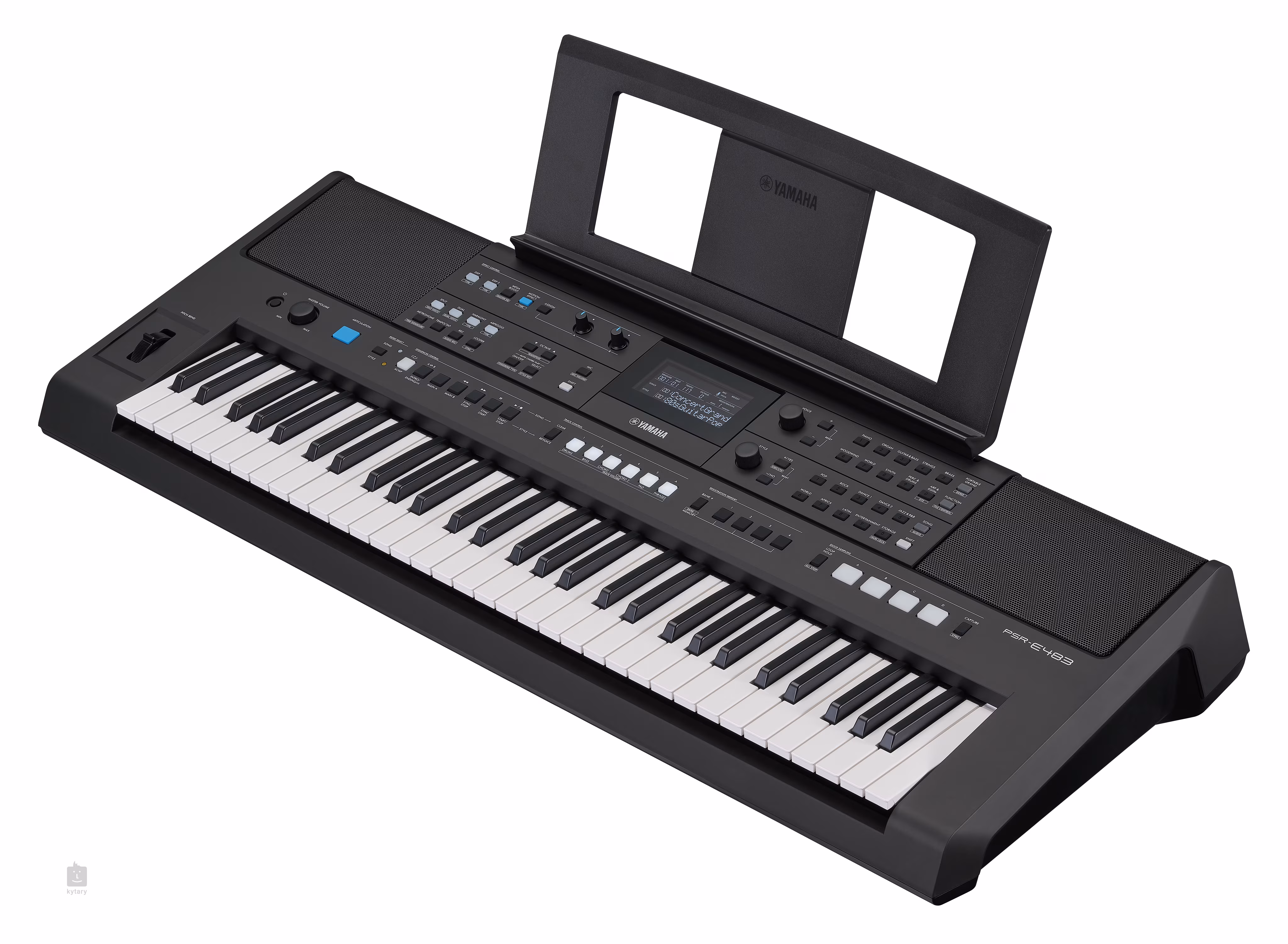 W wyposażeniu znajdują się wbudowane głośniki o mocy 2x 6 W, które zapewniają wystarczająco mocny i czysty dźwięk do gry w domu i podczas mniejszych występów. Złącze USB umożliwia łatwą integrację z komputerem, tabletem lub smartfonem w celu komunikacji MIDI i pracy z aplikacjami muzycznymi. Dostępne jest również wejście mikrofonowe, wyjście słuchawkowe, wejście AUX IN do odtwarzania zewnętrznych źródeł oraz możliwość zasilania bateryjnego, dzięki czemu PSR-E483 nadaje się również do gry poza zasięgiem sieci elektrycznej.