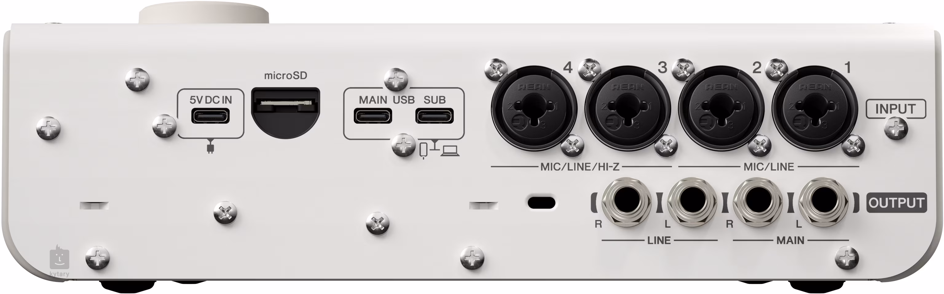 Bogata łączność pozwala podłączyć prawie każde źródło sygnału. Dostępne są 4 wejścia combo o wysokim zakresie wzmocnienia oraz stereo mini wejście AUX dla dodatkowych urządzeń. Dwa wyjścia słuchawkowe ułatwiają współpracę podczas nagrywania lub wygodne monitorowanie na scenie. Dzięki parze portów USB MAIN / USB SUB można elastycznie kierować sygnał zgodnie z aktualnymi potrzebami – USB MAIN obsługuje do 18 ścieżek nagrywania i 18 ścieżek odtwarzania, natomiast USB SUB oferuje 2 ścieżki nagrywania i 2 ścieżki odtwarzania.