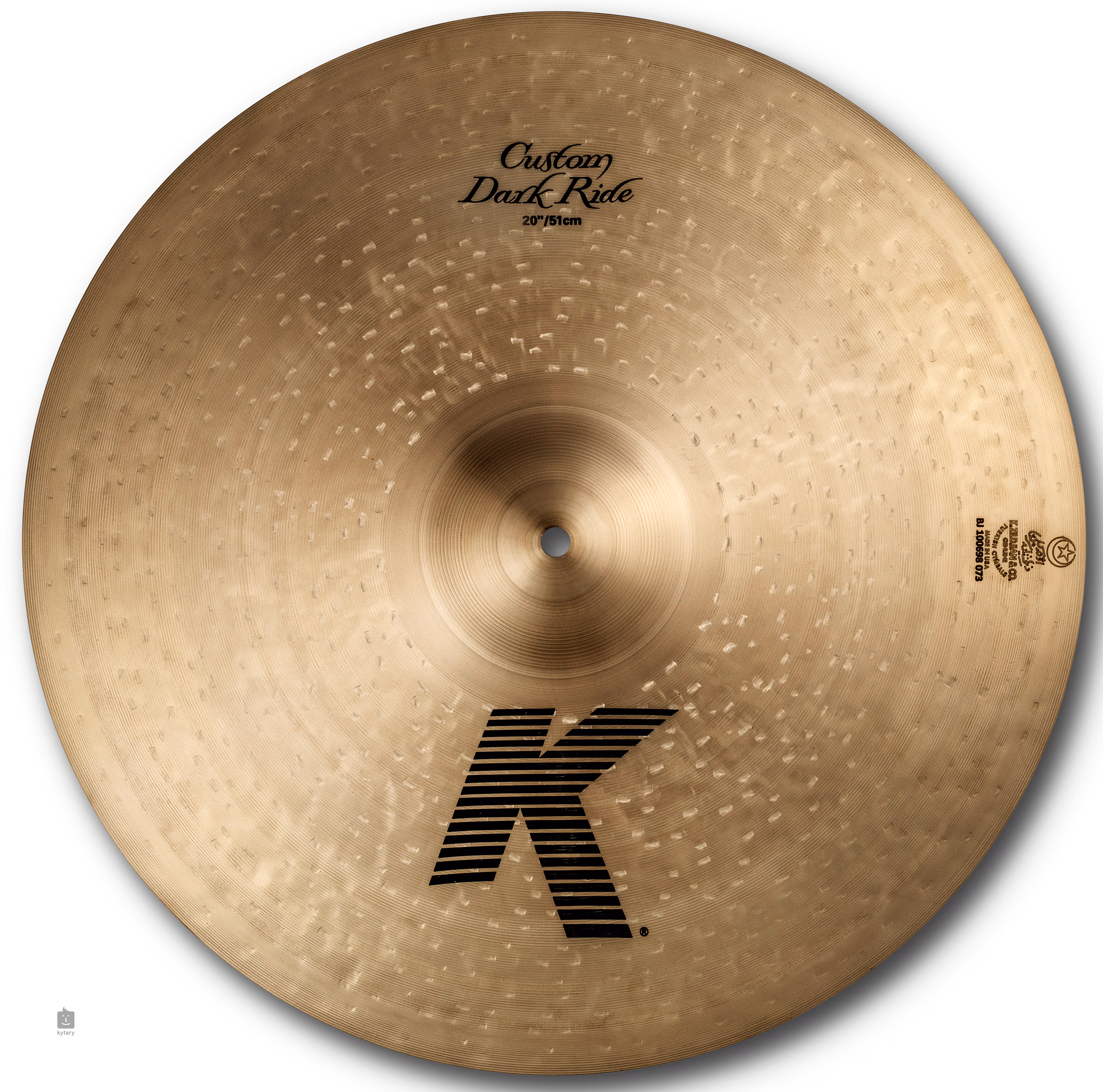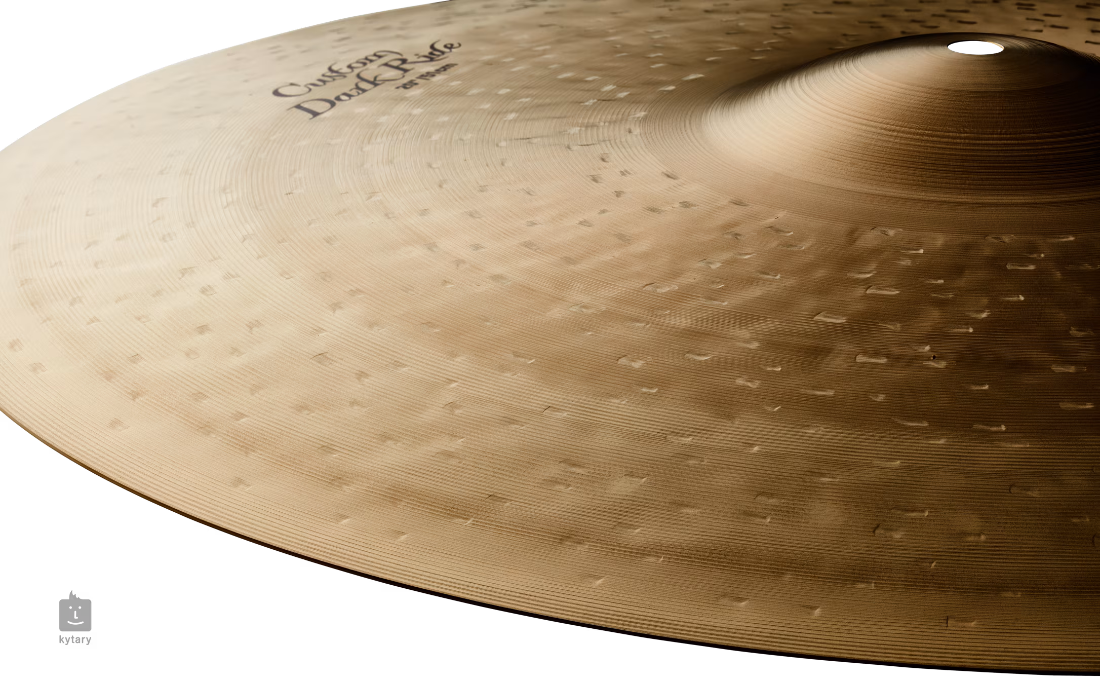 K Custom Dark Ride to średnio cienki talerz z wykończeniem Traditional, ciemnym, głębokim brzmieniem i średnim sustainem.