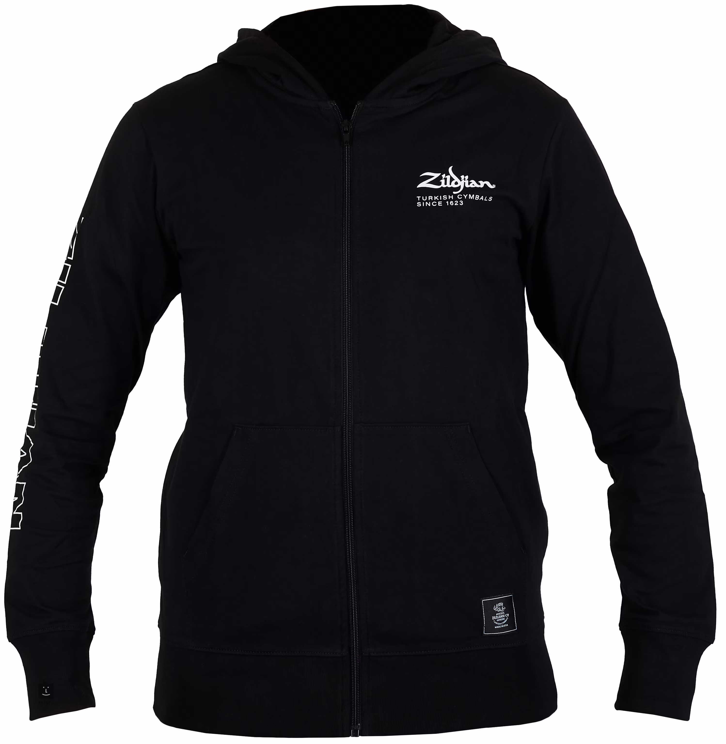 Czarny design uzupełnia wyraźne logo Zildjian po lewej stronie klatki piersiowej i charakterystyczny napis „Zildjian” wzdłuż prawego rękawa. Praktyczne są również pojemne przednie kieszenie, które służą do ogrzania rąk lub przechowywania drobiazgów. Detal w postaci tkanej naszywki z logo Zildjian na przedniej kieszeni podkreśla autentyczny charakter marki.